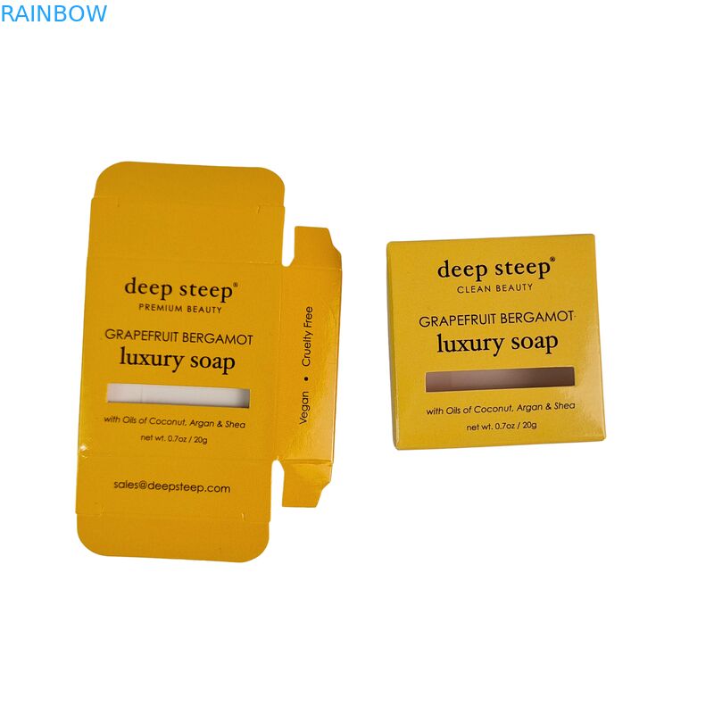 Πρωταθλή βιοαποικοδομητικό αναδιπλούμενο χαρτόνι συσκευασία κουτί κατασκευασμένο από χαρτί kraft με γυαλιστερή επικάλυψη και σημείο UV φινίρισμα Ιδανικό για πολυτελή καλλυντικά προϊόντα, συσκευασία σαπουνιού,και καταναλωτικά αγαθά υψηλής ποιότητας.
