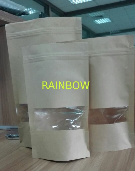 Reclosable στάση επάνω καμία τσάντα καφετιού εγγράφου συνήθειας τυπωμένων υλών με το τοπ φερμουάρ και το παράθυρο |